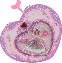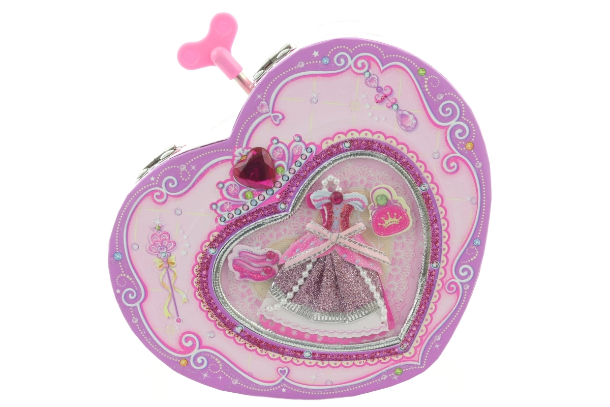 Metalowa konstrukcja z księżniczkowymi motywami, przezroczyste serduszko w wieczku oraz pewne zamknięcie dla bezpiecznego przechowywania drobiazgów.