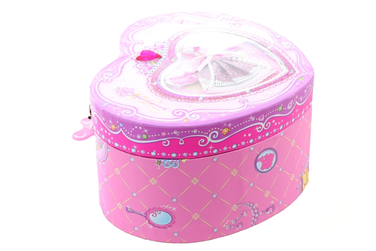 Ta urokliwa muzyczna szkatułka na biżuterię w kształcie serca łączy funkcjonalność i czarujący design. Po otwarciu wieczka w lusterku zaczyna wirować baletnica, a rozlega się melodia, która umila każdy dzień. Dzięki kompaktowym wymiarom doskonale pasuje na komodę, półkę czy biurko.
