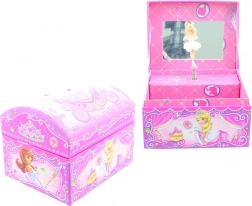 Ta urokliwa szkatułka z pozytywką ucieszy każde dziecko, które kocha porządek w swoich skarbach oraz magiczne detale. Po otwarciu wieka baletnica odbija się w lusterku, zaczyna tańczyć, a melodia wywołuje radosny uśmiech.