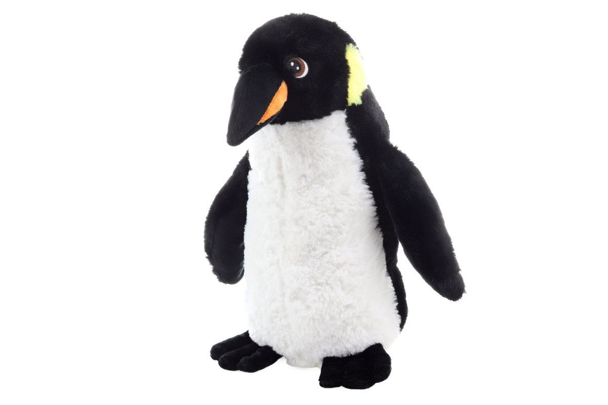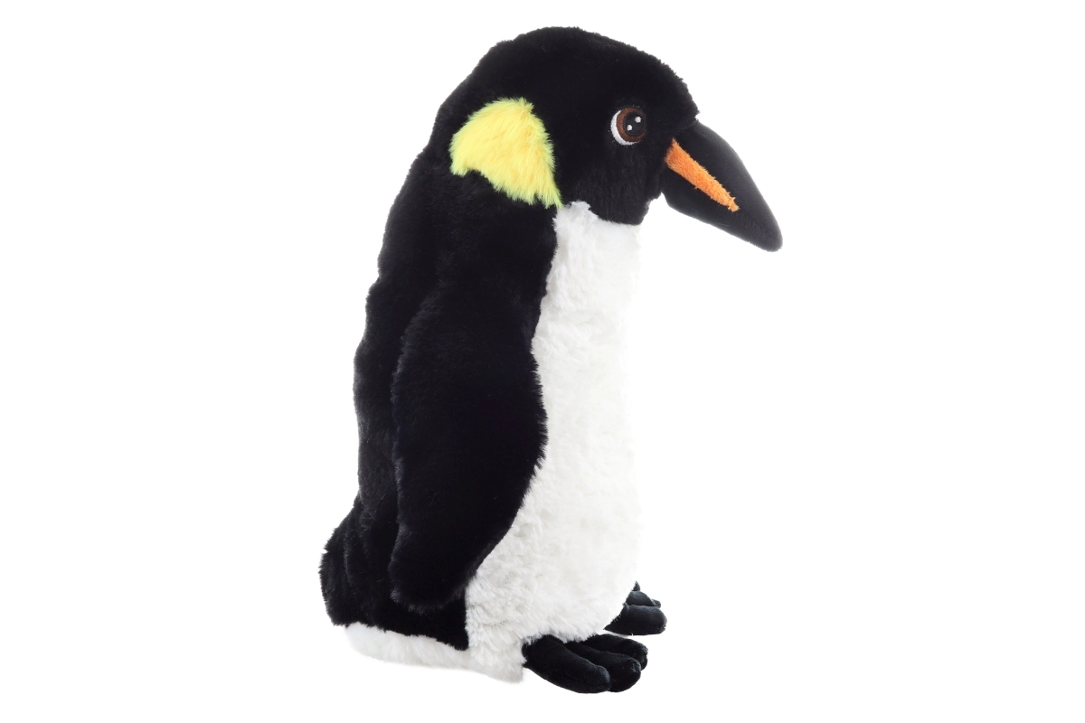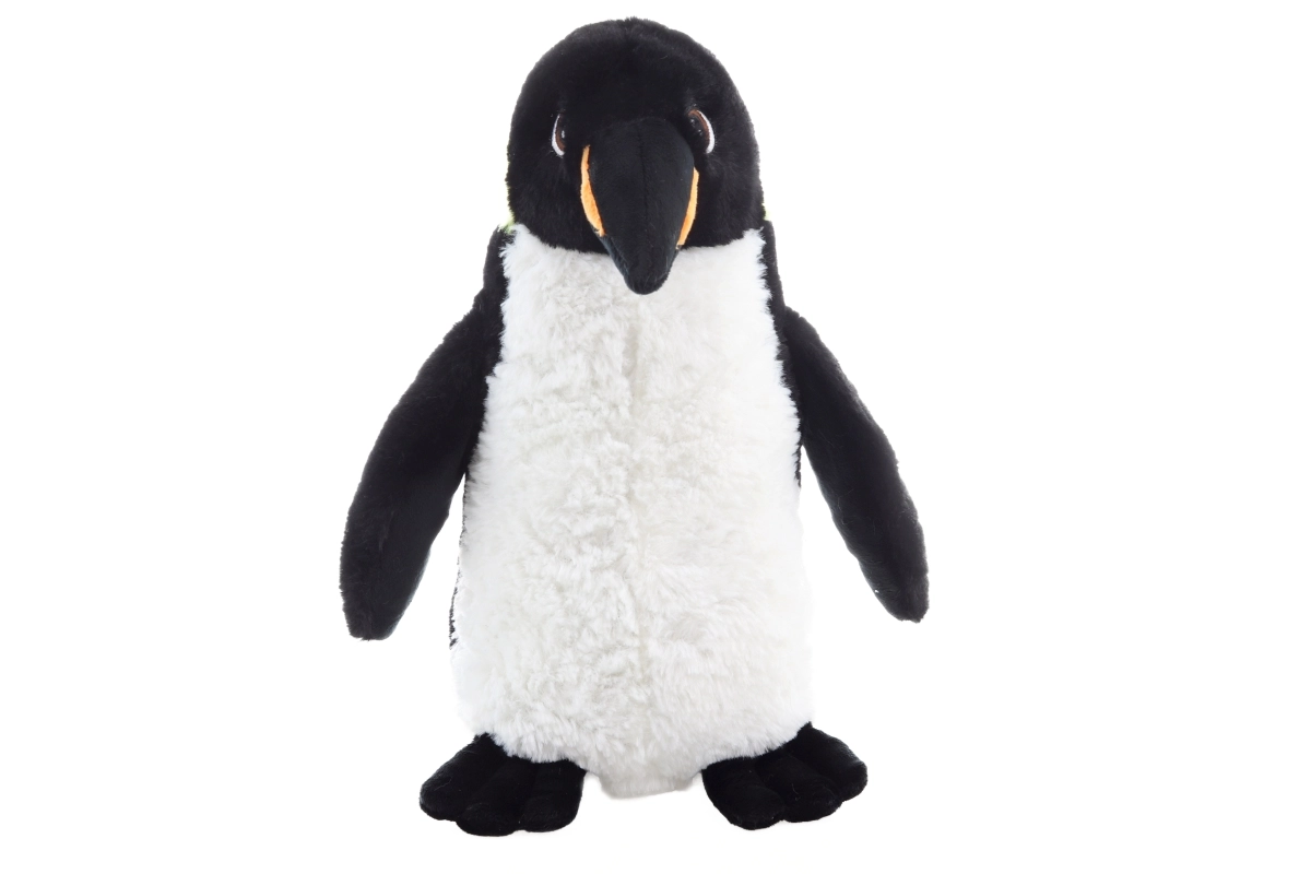 Realistyczna kolorystyka z białym brzuszkiem, czarnymi skrzydłami i kontrastowym dziobkiem pobudza dziecięcą wyobraźnię i wspiera kreatywną zabawę. Wymiary 30 × 23 × 17 cm czynią go idealnym towarzyszem w podróży i do łóżeczka.