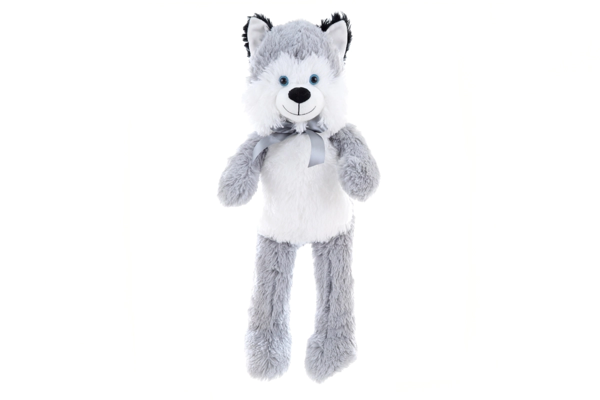Uroczy pluszowy husky o długości 55 cm to idealny towarzysz do przytulania i dekoracji dziecięcego pokoju. Ma mięciutkie, puszyste futerko, delikatną, przytulaśną konstrukcję i jest odpowiedni już od wiek 0+.