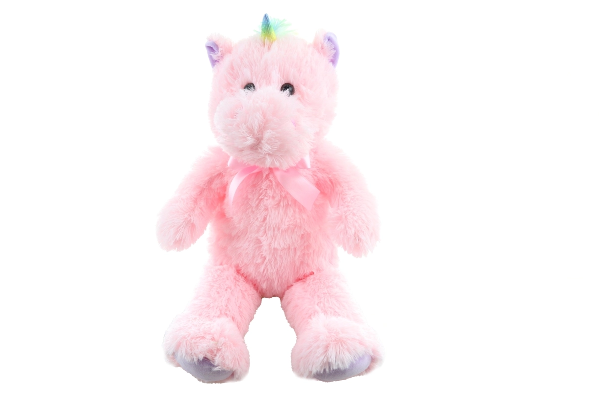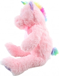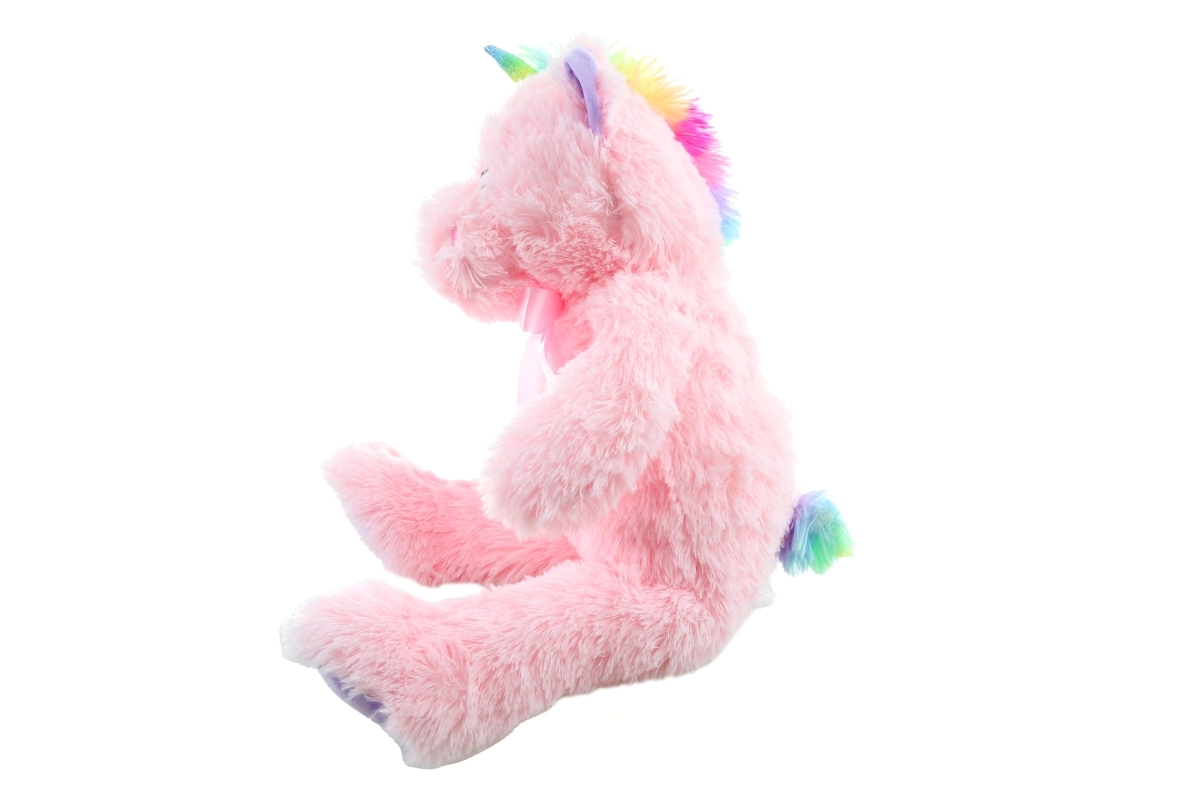 Kolorowy róg, grzywa oraz satynowa kokardka nadają zabawce magiczny wygląd, który dzieci uwielbiają.