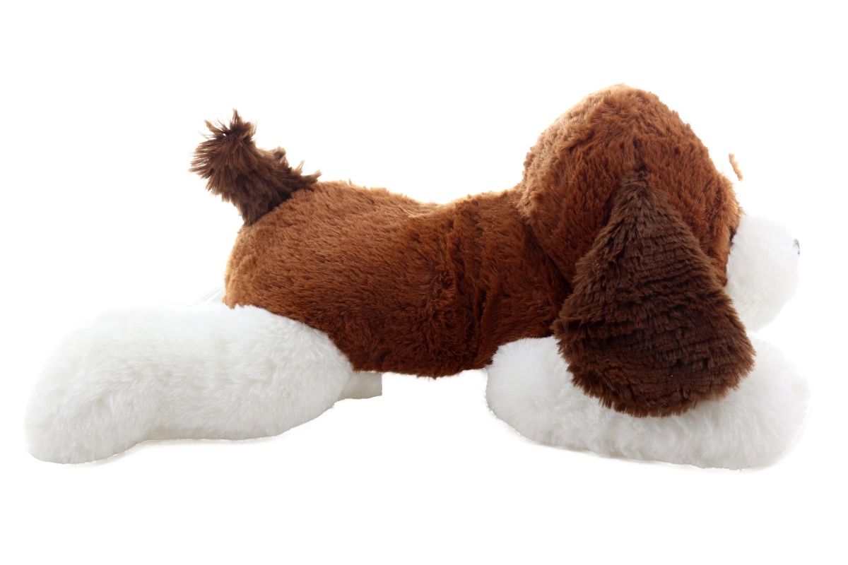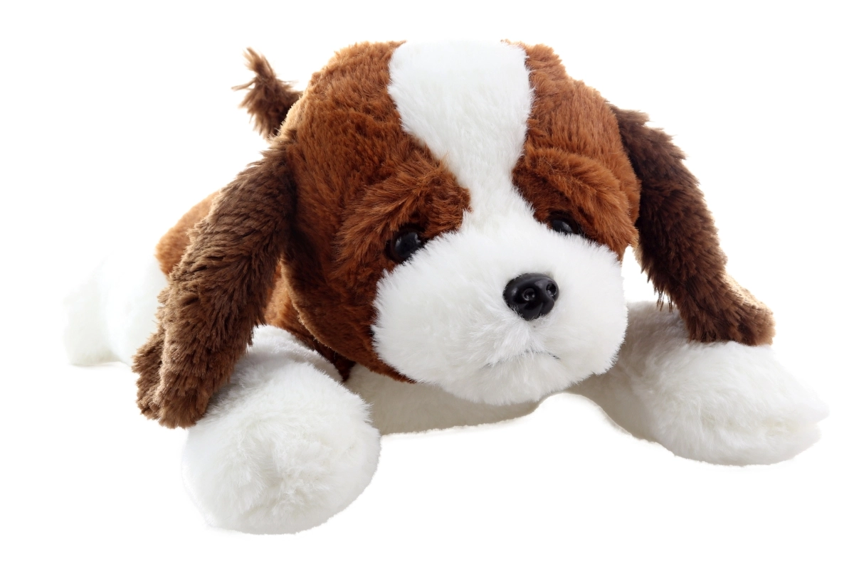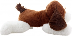 Ten jasny pluszowy piesek z brązowymi uszkami i białymi łapkami szybko podbije serca małych i dużych. Dzięki miękkiej powierzchni i pozycji leżącej świetnie nadaje się do przytulania, odpoczynku oraz jako dekoracja do pokoju dziecięcego. Bezpieczne wykonanie bez małych, odpinanych elementów jest odpowiednie dla niemowląt.