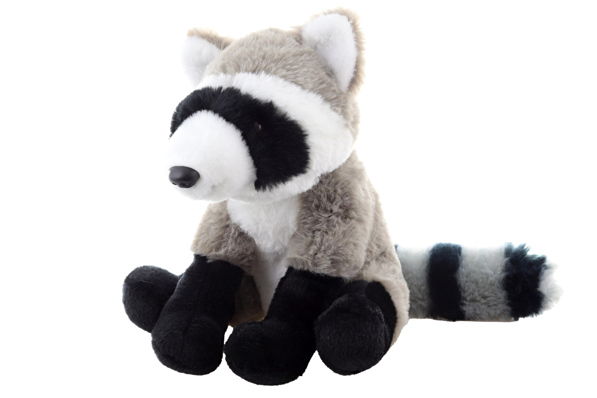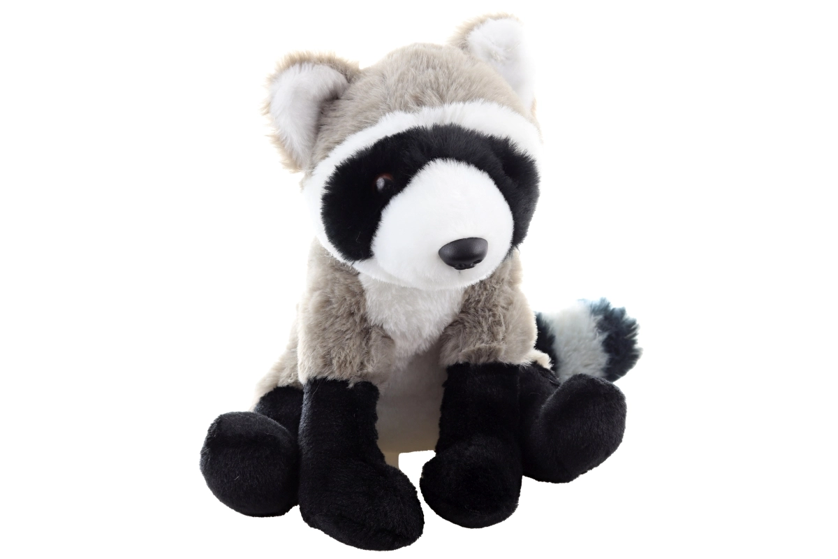 Charakterystyczna czarna maska, łapki i prążkowany ogon nadają zabawce uroczy i wierny wygląd.
