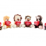Urocze pluszowe zwierzątko z czerwonym serduszkiem „I Love You” ucieszy zarówno dzieci, jak i dorosłych. Do wyboru jest kilka rodzajów – tygrys, lew, lampart, miś, małpka i hipcio. Zabawka jest mięciutka, aksamitna w dotyku i idealna jako prezent z miłości, przytulanka do spania oraz dekoracja do pokoju dziecięcego. Odpowiednie od 0+.