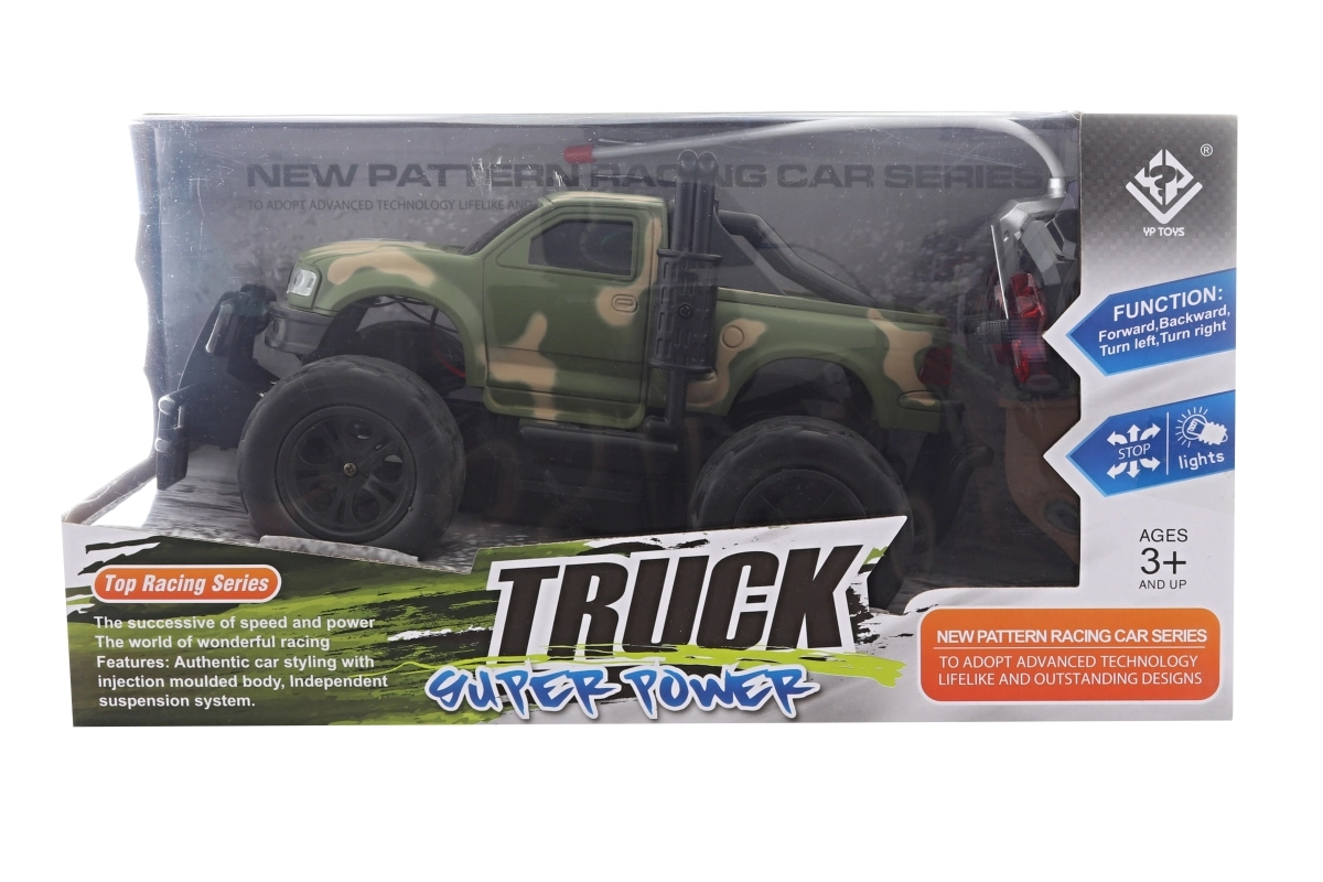 • Realistyczny off‑road wygląd: karoseria w moro, podwyższone podwozie, zderzaki.
