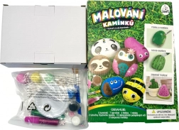 Zestaw zawiera kamyki, farby, pędzelki, paletę i ozdoby – dzieci mogą od razu zacząć tworzyć bez dodatkowego szukania akcesoriów.
