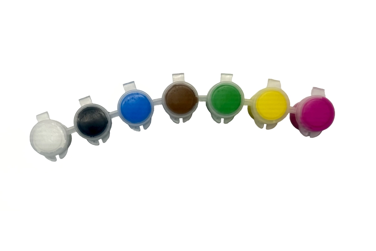 Praktycznie połączone kubeczki z pokrywkami utrzymują farby dłużej świeże i czyste. Idealne do wielokrotnego tworzenia bez bałaganu.