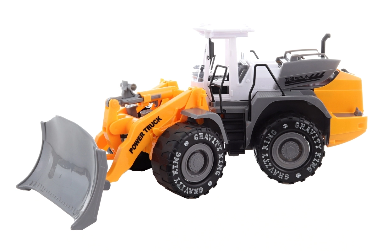 Wystarczy popchnąć, a pług sam się rozpędzi. Świetna zabawa bez baterii, idealna do dynamicznej zabawy na budowie.