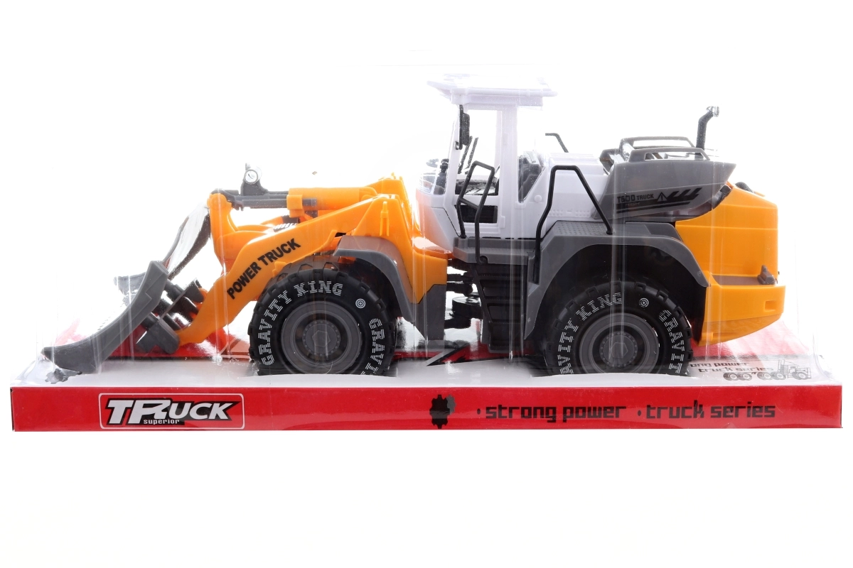 Plastowy pług z napędem ciernym ucieszy każdego małego miłośnika maszyn budowlanych. Po lekkim popchnięciu rusza do przodu i realistycznie naśladuje pracę na budowie. Dzięki solidnym kołom i ruchomej przedniej łyżce dzieci łatwo nabierają piasek, kamyki czy klocki.