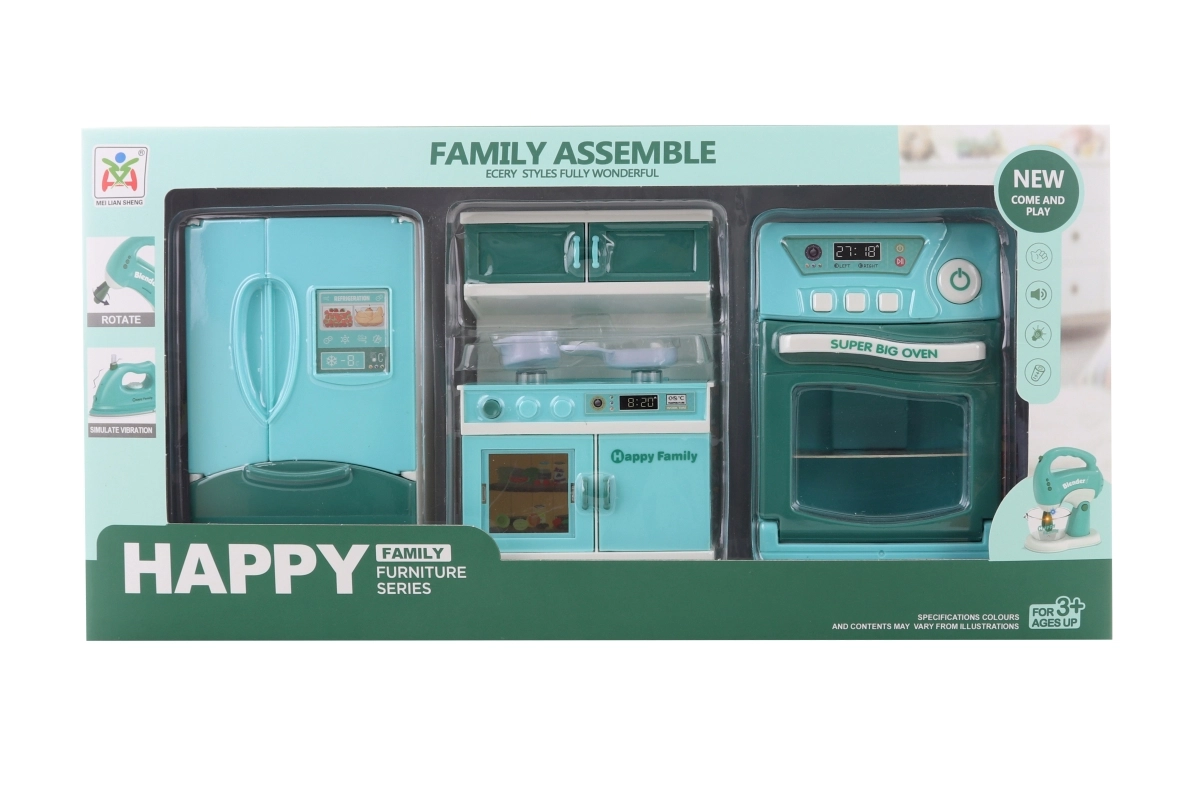 W opakowaniu znajdziesz nie tylko same urządzenia, ale także małe naczynia, produkty spożywcze i naklejki do personalizacji kuchni. Dzięki solidnemu wykonaniu z plastiku zestaw jest trwały i bezpieczny do codziennej zabawy.