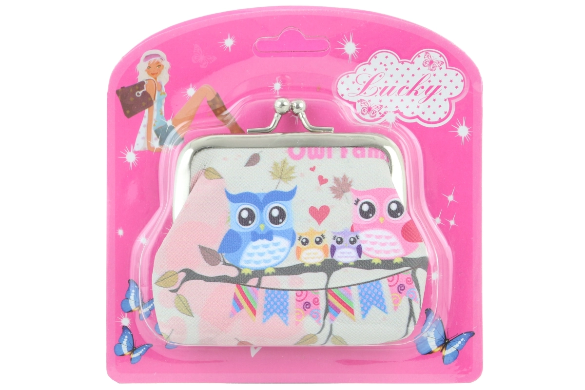 Uroczy dziecięcy portfelik we wzór w sówki ucieszy każdą małą elegantkę i elegantika. Oferuje praktyczne wymiary, łatwe użytkowanie i jest idealny na pierwsze kieszonkowe lub drobiazgi w podróży.