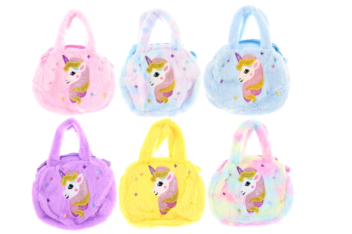 Ta mięciutka pluszowa torebka z motywem ulubionego jednorożca to stylowy dodatek dla małych i dużych miłośniczek fantazji. Dzięki kompaktowemu rozmiarowi świetnie nadaje się na drobiazgi, takie jak klucze, portfel czy telefon, a przy tym pozostaje lekka i wygodna w noszeniu.