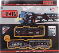 - 10 elementów torów, 1 lokomotywa, 2 wagony