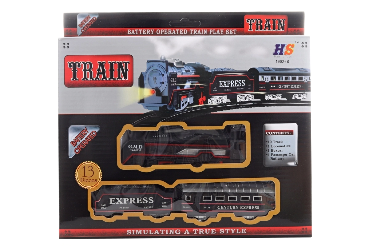 Odkryj zabawny zestaw kolejowy na baterie, który ucieszy małych miłośników pociągów już od 3. roku życia. Zestaw zawiera 10 elementów torów, lokomotywę i 2 wagony, wykonane z wytrzymałego plastiku, a po złożeniu tworzy okrąg o średnicy ok. 67,5 cm. Lokomotywa jest zasilana 2× bateriami AA (nie są dołączone do zestawu).