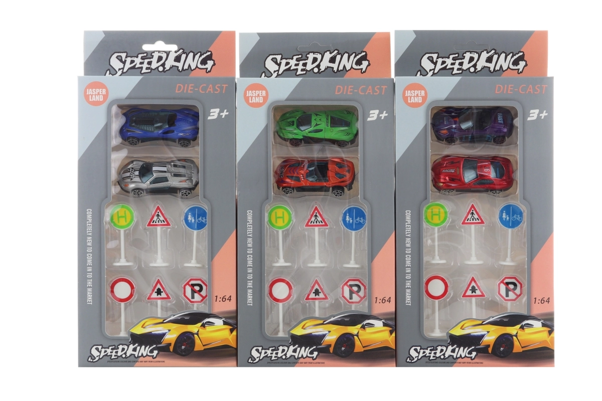 Zabawny zestaw metalowych autek z realistycznymi plastikowymi znakami drogowymi dla małych kierowców. Świetny do rozwijania wyobraźni i nauki przepisów drogowych, idealny jako prezent dla dzieci od 3 lat.