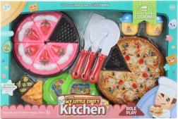 Odkryj zabawny plastowy zestaw jedzenia i naczyń dla małych kucharzy. Opakowanie zawiera 21 elementów różnych produktów i akcesoriów, idealnych do zabawy w kuchnię oraz rozwoju motoryki małej i wyobraźni. Odpowiednie dla dzieci od 3 lat.