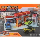 Poszczególne elementy z miękkiej tektury łatwo się łączą, tworząc stabilny model stacji o praktycznych wymiarach do zabawy na stole lub podłodze. Całe opakowanie jest kompaktowe i doskonale sprawdzi się również jako świetny prezent dla małych miłośników aut i klocków.