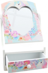 Drewniana szkatułka na biżuterię z lustrkiem w kształcie serca Jednorożec