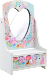 Odchylane lusterko w formie serca ułatwia czesanie i przymierzanie dodatków, a szkatułce dodaje bajkowego wyglądu.