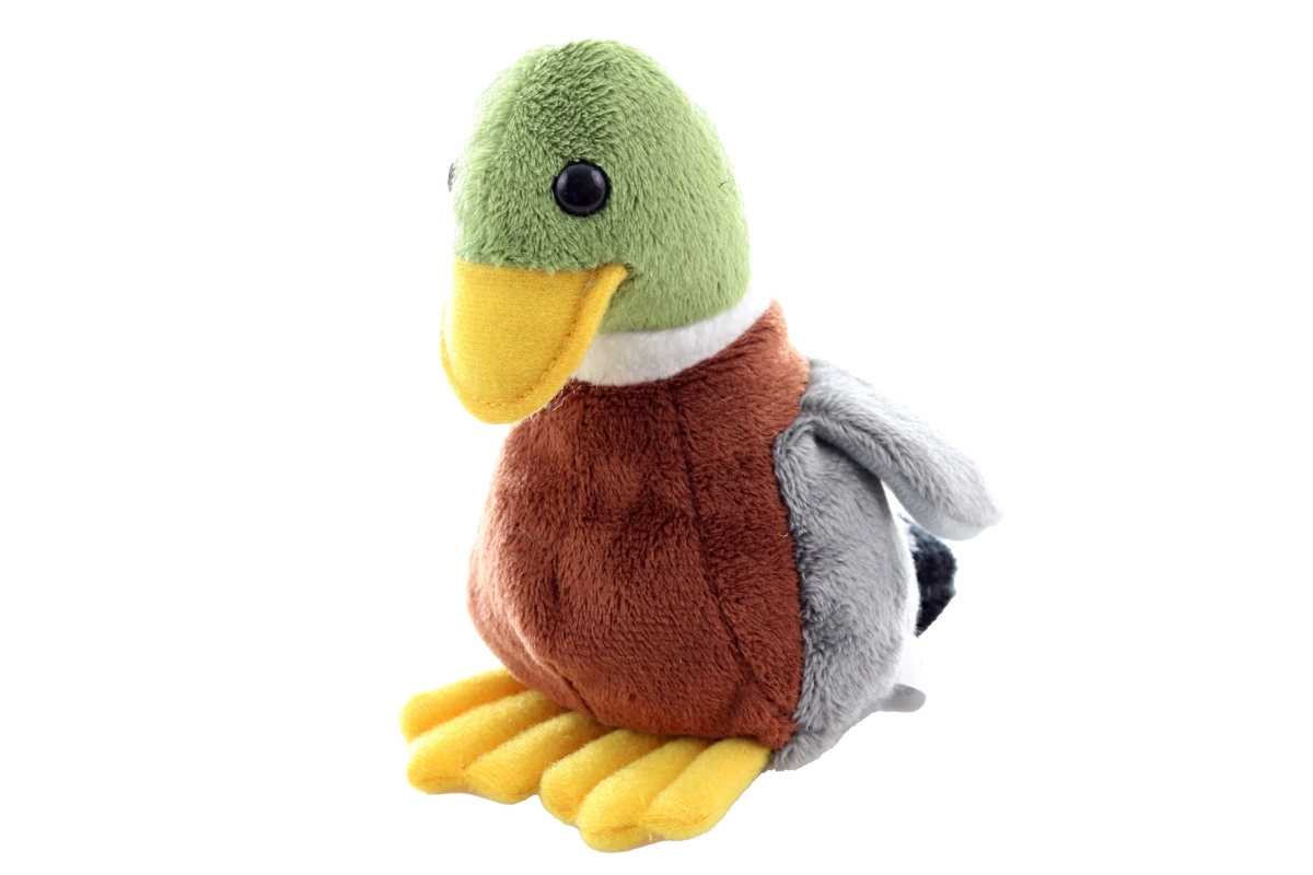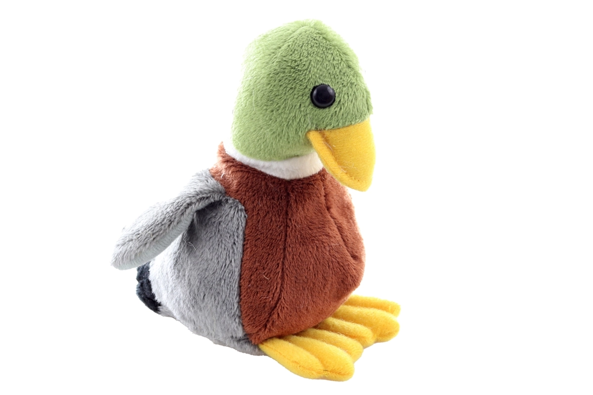 Ta starannie wykonana pluszowa kaczka z miękką, delikatną powierzchnią i realistyczną kolorystyką (zielona główka, żółty dzióbek i łapki, brązowe ciałko, szare skrzydła) ucieszy każdego małego miłośnika zwierząt. Dzięki kuleczkom w wypełnieniu zachowuje stabilność i łatwiej siada na półce czy w łóżeczku.