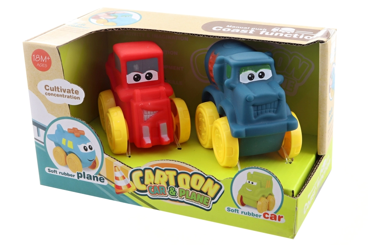Ten zestaw zawiera dwa dziecięce samochodziki z miękkiego plastiku, które świetnie sprawdzą się do pierwszych zabaw w domu i w podróży. Dzięki zaokrąglonym kształtom i przyjemnemu w dotyku materiałowi są bezpieczne i wygodne do trzymania. Dostarczane w otwartym pudełku prezentowym, więc od razu widać kolory i wykonanie.