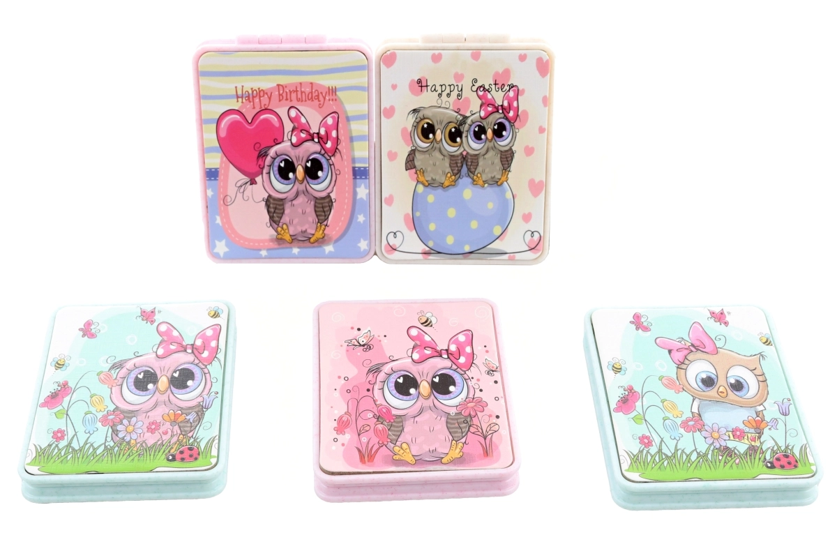 Ciesz się poręcznym i stylowym kieszonkowym lusterkiem z sowami, które zmieści się do każdej torebki. Dzięki kompaktowym wymiarom i lekkiej plastikowej obudowie jest idealne w podróż, do szkoły i do pracy. Różne urocze motywy sów ucieszą dzieci i dorosłych.