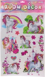Wnieś do wnętrza subtelny baśniowy nastrój dzięki ściennym naklejkom z jednorożcami. Dekor idealnie sprawdzi się w pokoju dziecięcym, bawialni lub kąciku zabaw, a dzięki samoprzylepnej warstwie łatwo nakleisz go na gładką, czystą powierzchnię.