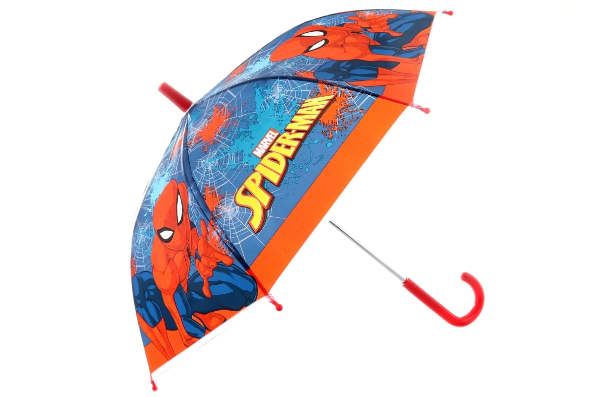 Ten kolorowy parasol z ikonicznym motywem MARVEL SPIDER-MAN jest idealny dla dzieci kochających superbohaterów. Dzięki solidnym metalowym drutom i wytrzymałej powłoce niezawodnie chroni przed deszczem, a zaokrąglone końcówki żeber zwiększają bezpieczeństwo podczas noszenia.