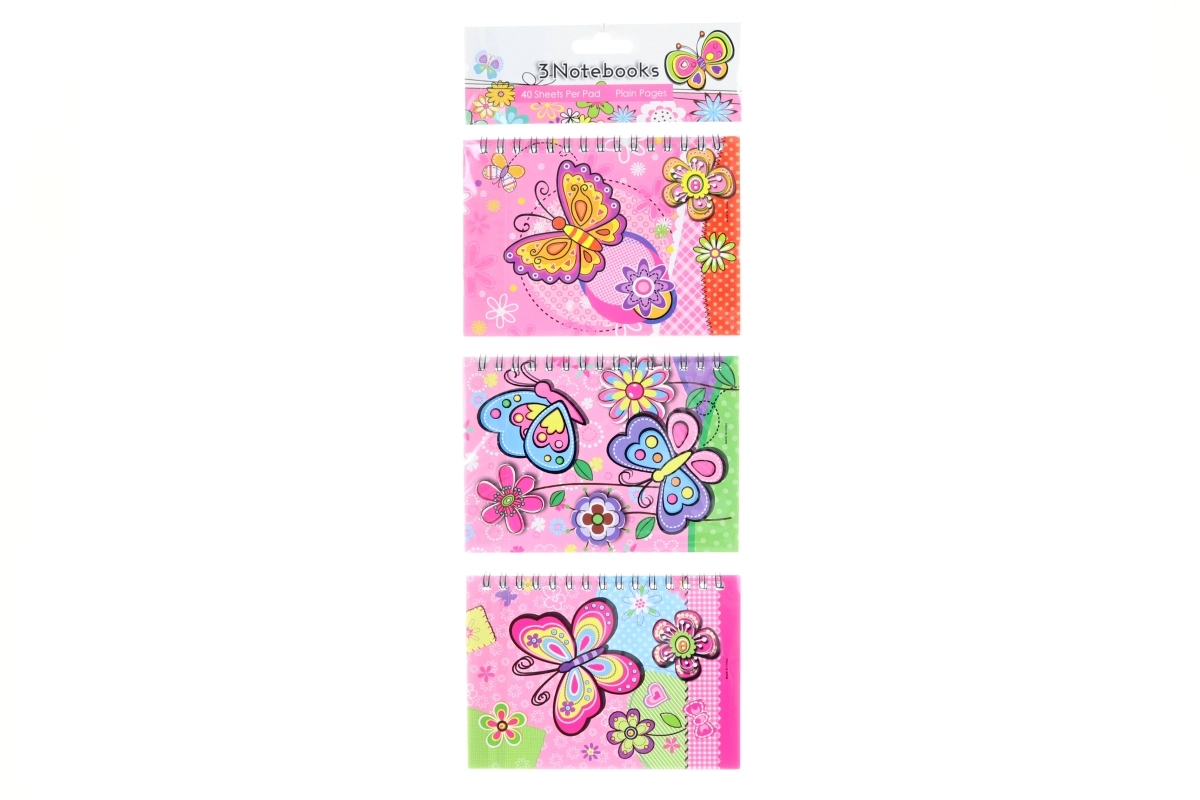 Stylowy zestaw trzech notatników z subtelnym motywem motyli ucieszy miłośników pisania i organizacji. Każdy notatnik ma kolorowe, liniowane kartki dla przejrzystych notatek oraz kompaktowe wymiary 10 × 14,5 cm, dzięki czemu zmieści się do torebki i plecaka. Praktyczne opakowanie idealnie sprawdzi się jako zestaw prezentowy lub do użytku własnego.