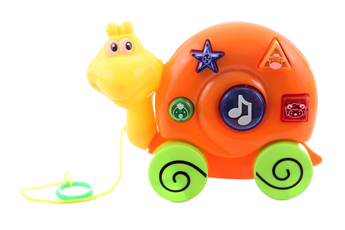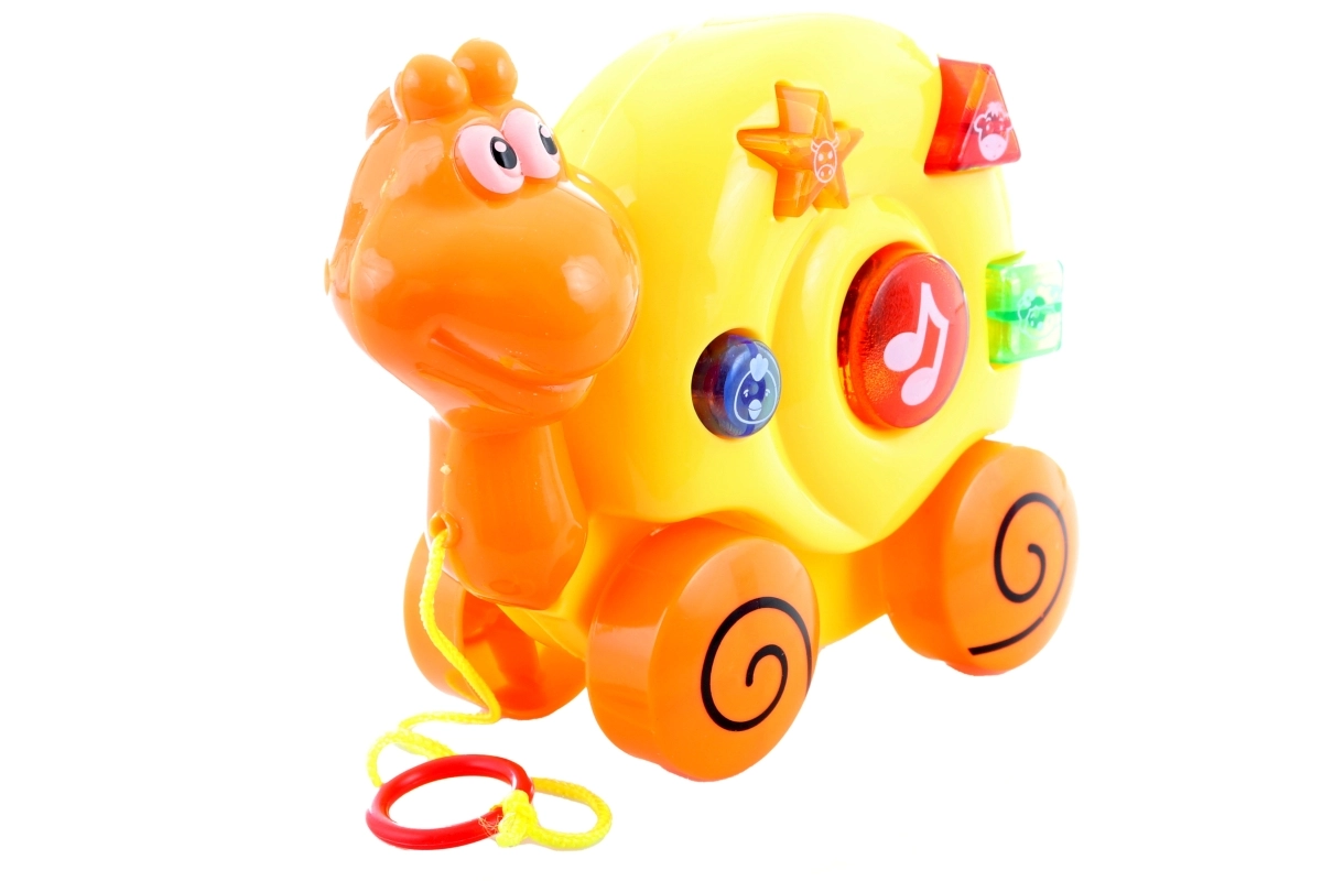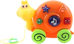 Świetny towarzysz pierwszych kroczków – dziecko ciągnie ślimaka za sobą, trenując motorykę dużą, koordynację i równowagę. Prosta obsługa i przyjemny rozmiar umożliwiają wygodne chwytanie nawet najmłodszym.