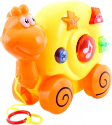 Ten kolorowy pchacz-ślimak to idealna pierwsza zabawka na sznurku. W ruchu wydaje wesołe melodie i dźwięki zwierząt, pobudzając dziecięcą ciekawość i rozwijając zmysły. Dzięki solidnemu wykonaniu z plastiku jest bezpieczny i wytrzymały do codziennej zabawy.
