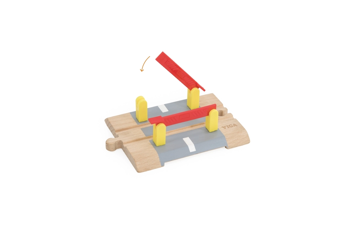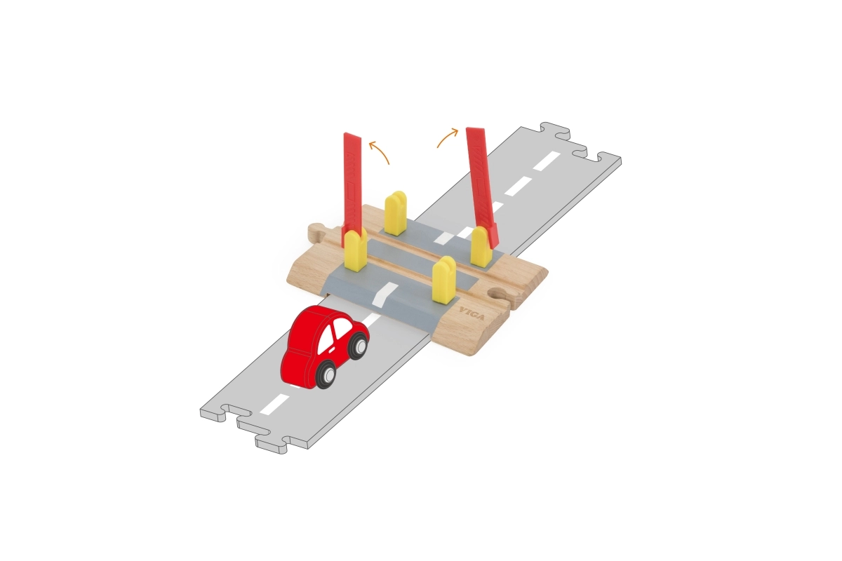 Ten starannie wykonany drewniany przejazd świetnie uzupełni każdą kolejkę drewnianą i zestaw drogowy. Ruchome czerwone rogatki i wyraźne słupki wiernie odwzorowują prawdziwy ruch, dzięki czemu dzieci łatwo zanurzają się w zabawie i tworzą własne sytuacje drogowe.