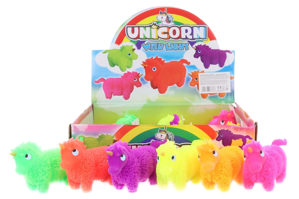 - Gumowa zabawka – kudłaty jednorożec ze światłem