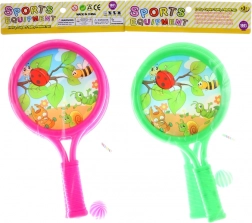 Zabawny dziecięcy zestaw do gry zawiera 2 plastikowe paletki, piłeczkę i koszyczek z uroczym motywem zwierzątek. Idealny do aktywnej zabawy w domu i na zewnątrz, wspiera ruch, koordynację oraz zabawę dla dzieci od 3 lat.