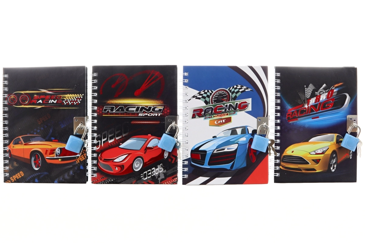 Stylowy chłopięcy notes z zamkiem do bezpiecznego przechowywania tajemnic i notatek. Zawiera 46 liniowanych kartek, metalowy zamek z 2 kluczykami oraz trwałą twardą okładkę. Kompaktowy wymiar 11 × 15 × 1 cm mieści się do plecaka i torby. Dostępny w różnych wyścigowych motywach w zależności od dostępności magazynowej.