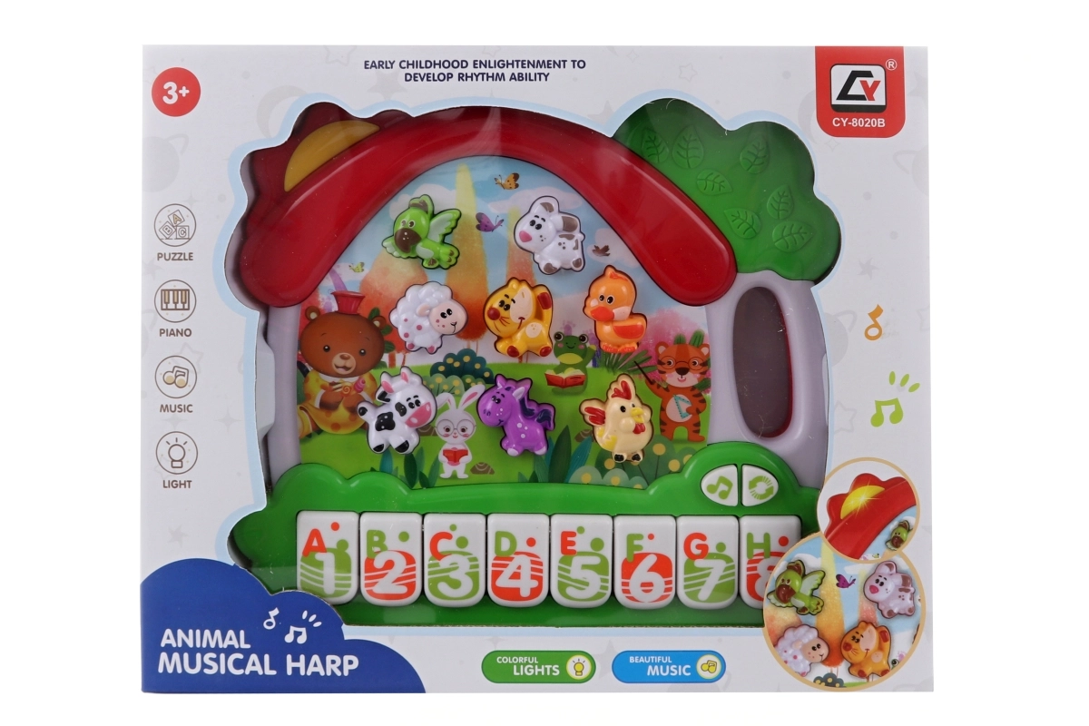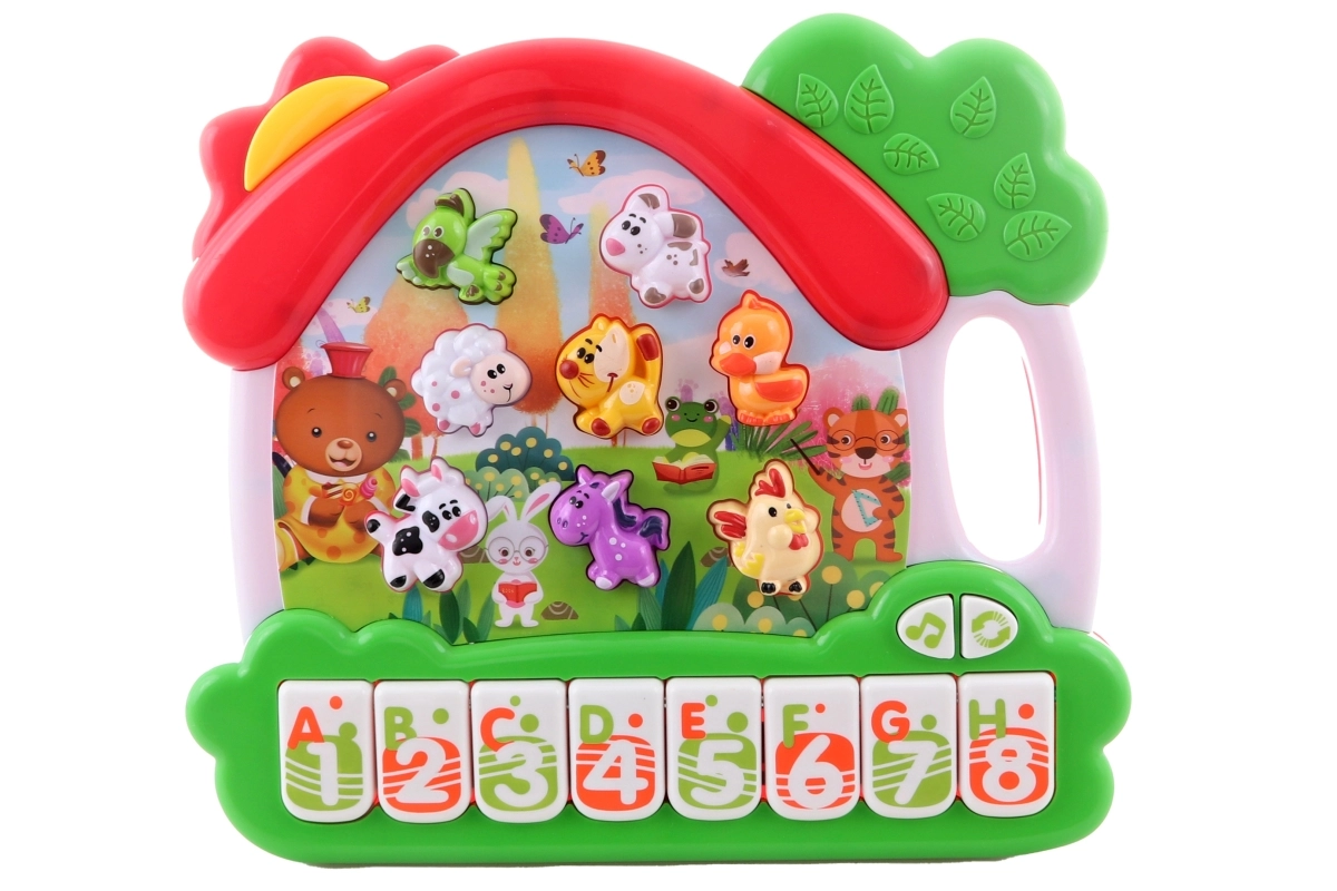 Zabawne dziecięce pianinko w kształcie domku ucieszy małych muzyków od 3 lat. Oferuje 8 przycisków z odgłosami zwierząt oraz 8 przycisków z cyframi z angielską wymową, dzięki czemu rozwija słuch muzyczny i umiejętności językowe. Lekkie wykonanie z plastiku, łatwa obsługa i kompaktowe wymiary do zabawy w domu i w podróży.
