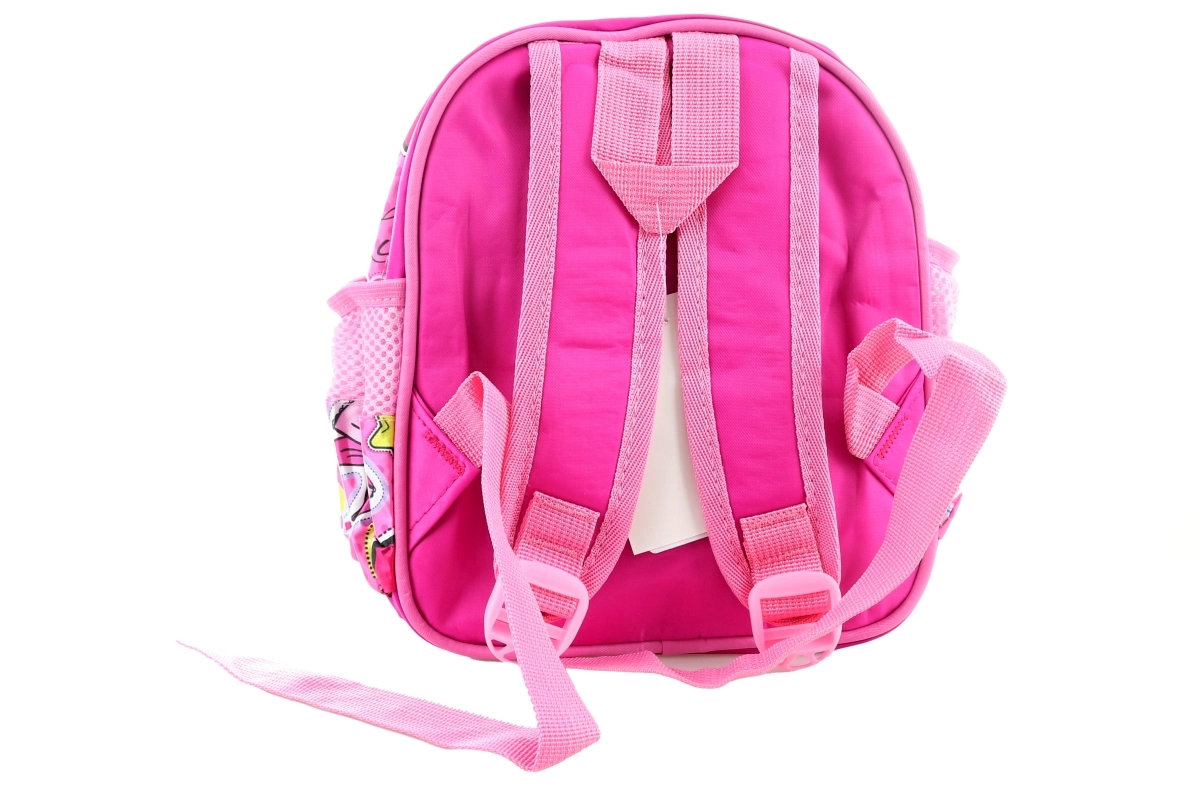 Wygodę zapewniają wyściełane i regulowane szelki oraz górny uchwyt do łatwego przenoszenia. Boczne kieszenie z siatki dobrze trzymają butelkę z napojem lub drobne akcesoria. Kompaktowe wymiary 22 × 25 × 8 cm są idealne dla młodszych dzieci. Produkt nie jest zabawką.
