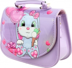Atrakcyjne, błyszczące wykończenie z nadrukiem króliczka, serduszek i baloników przyciąga uwagę i świetnie dopełnia dziecięce stylizacje.