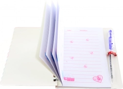 Wesoły notes z motywem jednorożców i praktycznym długopisem ucieszy małych i dużych miłośników uroczych dodatków. Oferuje 30 kolorowych, liniowanych kartek, kompaktowe wymiary 10,5 × 14 × 0,5 cm i jest idealny do torebki, plecaka i do szkoły. Dostarczamy różne wzory w zależności od dostępności magazynowej.
