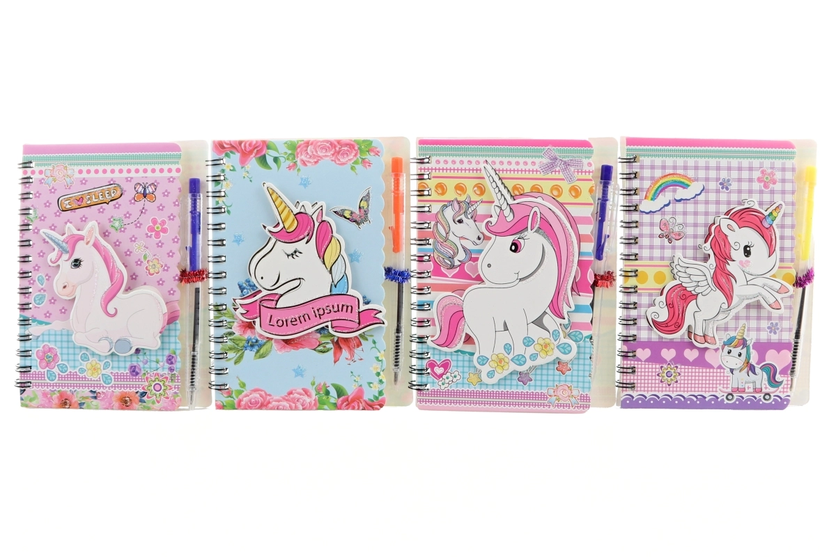 Zaopatrz się w stylowy notes z długopisem z motywem jednorożców, który świetnie sprawdzi się do notatek, pomysłów i szybkich wiadomości. Dzięki kompaktowym wymiarom zmieści się niemal wszędzie, a kolorowe, liniowane kartki umilą każde pisanie.