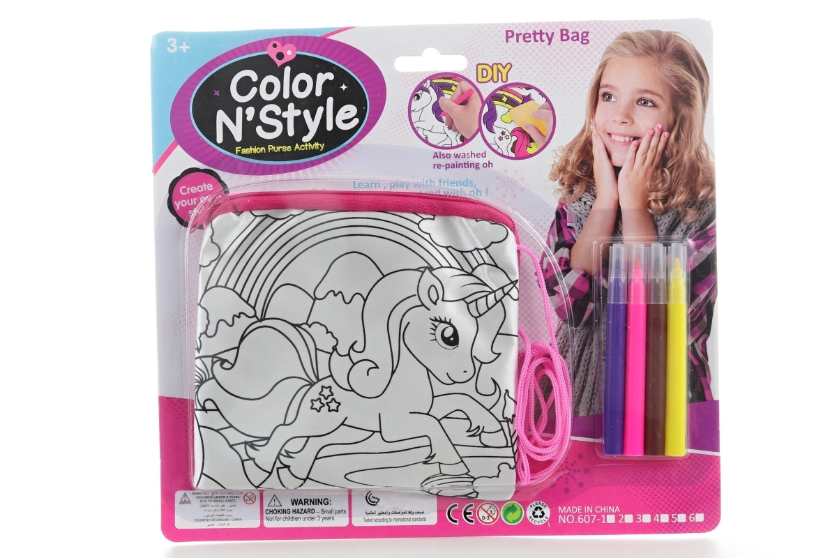 Zamień zwykłą torebkę w oryginalny modny dodatek! Kolorowanka–torebka z motywem jednorożca to świetny wybór dla dzieci, które kochają tworzyć. Dzięki dołączonym flamastrom mogą łatwo pokolorować torebkę według własnej wyobraźni i nosić ją na co dzień.