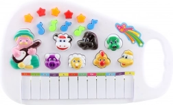 Zabawne dziecięce pianinko z odgłosami zwierzątek dla małych muzyków od 3 lat. Oferuje 12 klawiszy do grania melodii, 7 przycisków z dźwiękami zwierząt oraz 10 efektów tonalnych do odkrywania muzyki. Lekka plastikowa konstrukcja i prosta obsługa sprawiają, że to pianinko to świetny wybór do rozwoju słuchu, rytmu i motoryki małej.