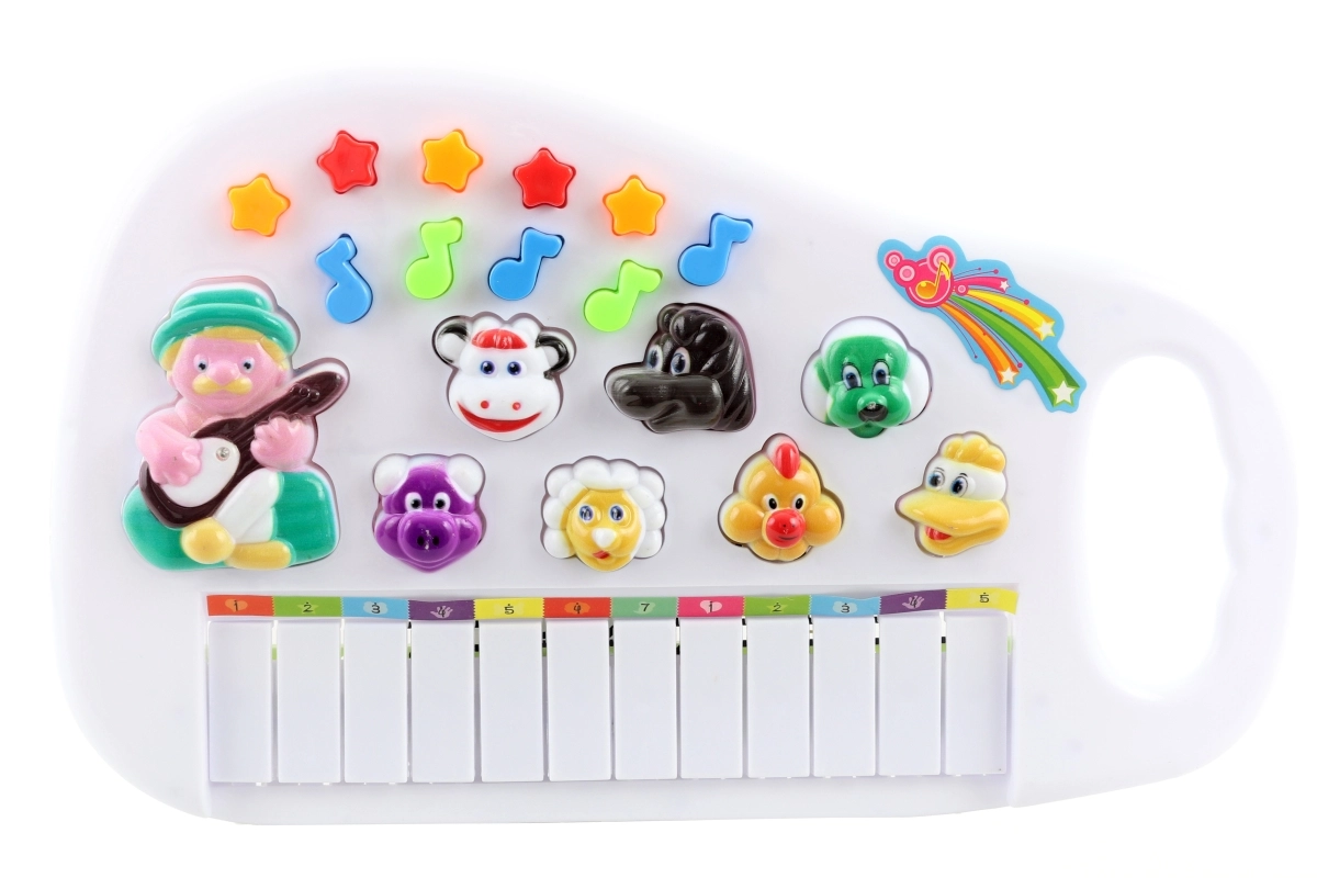Odkryj świat muzyki z zabawnym dziecięcym pianinkiem z odgłosami zwierzątek. Dzięki 12 klawiszom dzieci łatwo zagrają pierwsze melodie, a 7 przycisków z dźwiękami zwierząt zapewnia figlarne efekty, które pobudzają wyobraźnię. Dodatkowe 10 przycisków tonalnych poszerza możliwości zabawy i naturalnie rozwija wrażliwość muzyczną.