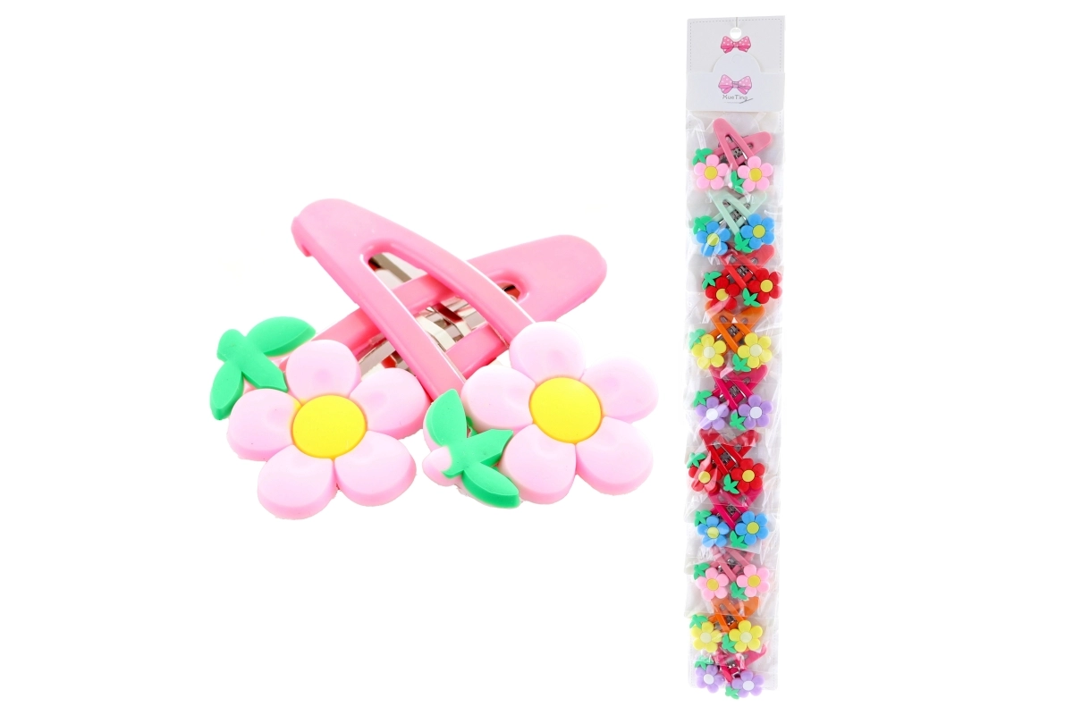 Urocze spinki do włosów z motywem kwiatuszków są idealne na co dzień i na wyjątkowe okazje. W opakowaniu znajdziesz 2 sztuki, jednak dostarczamy wyłącznie w opakowaniach po 10. Mix różnych kolorów ułatwia dopasowanie do stroju. Praktyczne opakowanie w woreczku, mocne trzymanie i delikatne wykończenie dla wygodnego noszenia.