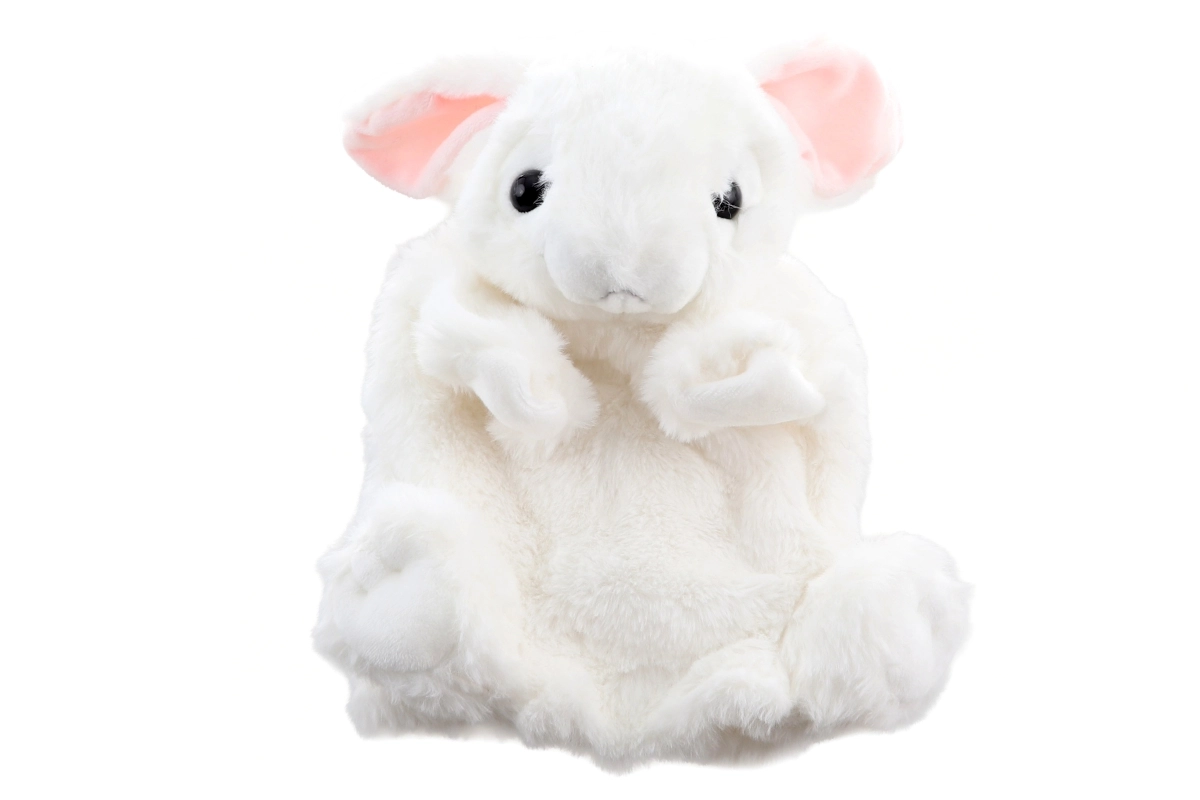 Ta mięciutka pacynka w kształcie białego króliczka z różowymi uszkami i wyrazistymi oczkami wspiera wyobraźnię oraz rozwój mowy. Dzięki przyjemnej, puszystej powierzchni idealnie nadaje się do przytulania i pierwszego domowego teatrzyku – w domu i w drodze.
