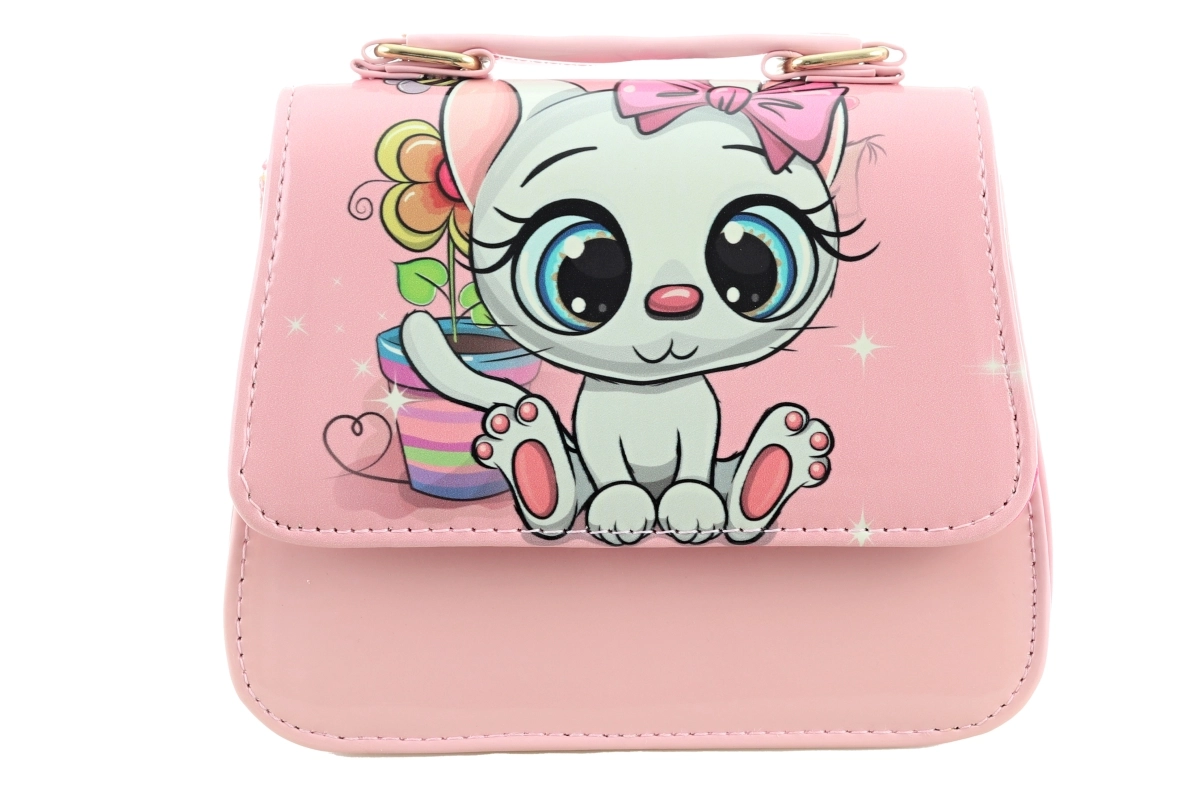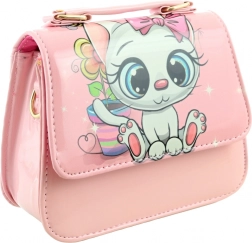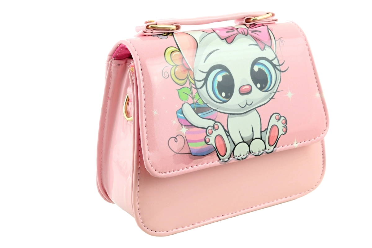 Dziecięca torebka z motywem kotka, różowa, błyszcząca