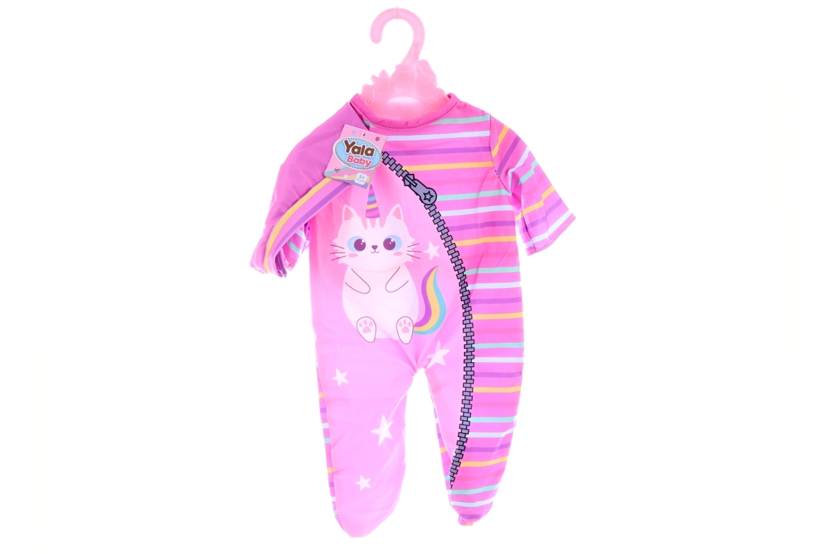 Podaruj swojej lalce nowy styl z uroczym zestawem ubranek z kotkiem. Zestaw zawiera pajacyk o długości około 32 cm (od ramienia) oraz czapeczkę, które łatwo się zakłada i dobrze pasują do większości standardowych lalek w tym rozmiarze. Dzięki delikatnemu wykończeniu ubranko nadaje się do codziennej zabawy.