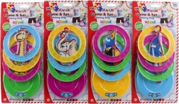 Zawartość opakowania obejmuje stabilną podstawkę i 3 kółka do rzucania z wysokiej jakości plastiku. Motywy zwierzątek nadają zabawie radosny charakter i przyciągają uwagę dzieci już od 3 lat. Dostępnych jest wiele wzorów – wybór zależy od aktualnej dostępności magazynowej.