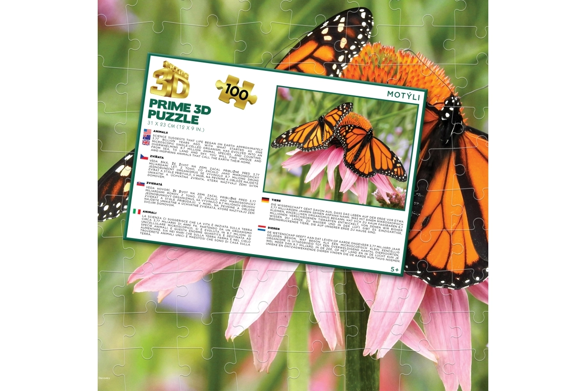 Odkryj magię przestrzennego układania dzięki puzzlom 3D z motywem motyli. Zestaw zawiera 100 elementów, a po ułożeniu powstaje lentikularny obraz 3D o wymiarach 31 × 23 cm. Idealna zabawa dla dzieci od 5 lat, rozwijająca cierpliwość, motorykę małą i percepcję wzrokową.